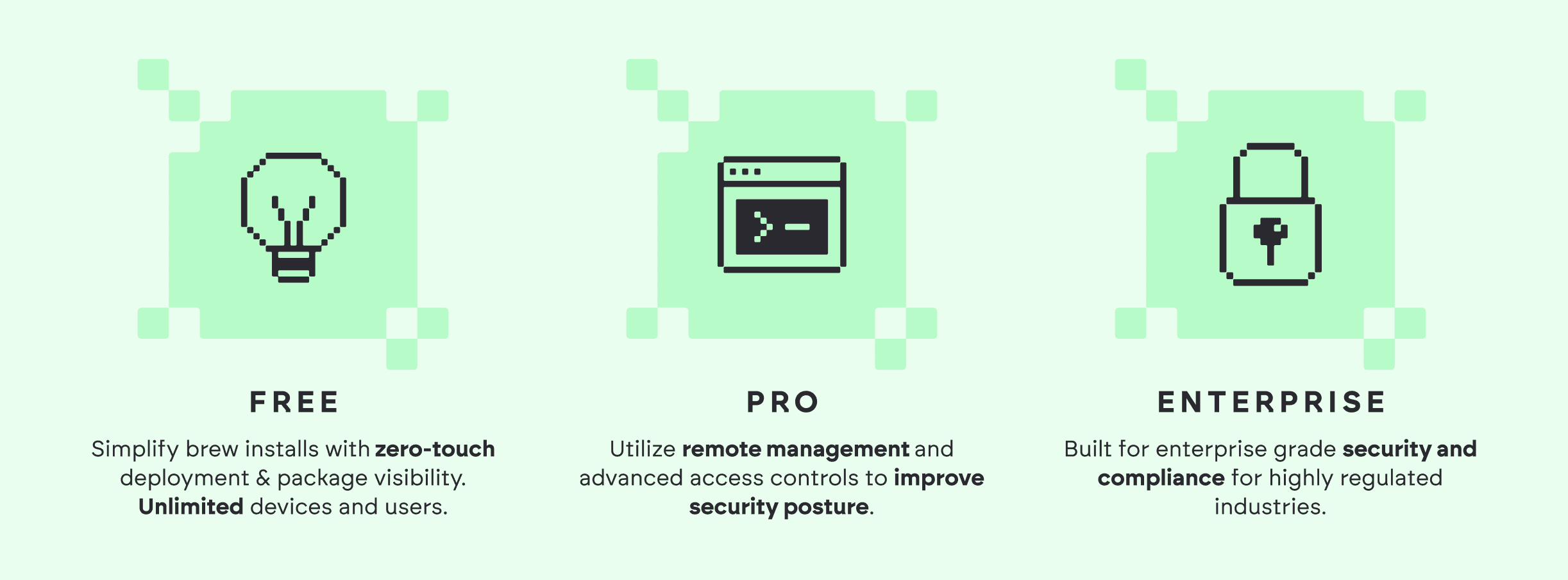 Today, Workbrew is graduating from beta to 1.0 and is generally available, including a Free plan with support for unlimited users and devices. With this milestone, there’s finally a way to deploy, manage, and secure brew at scale. Increased developer productivity no longer comes at the expense of a weakened security posture for organizations.