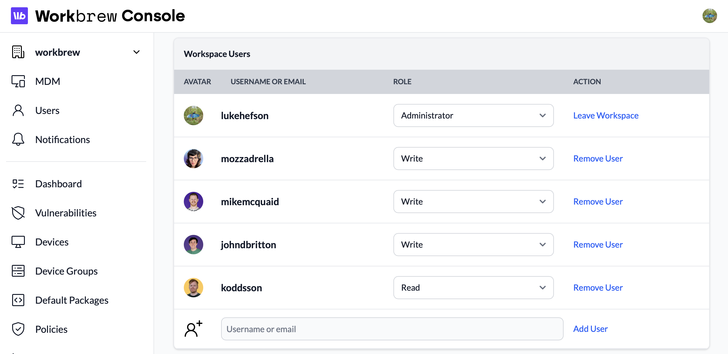 Admins now have fine-grained control over who can access what within their Workbrew workspace.