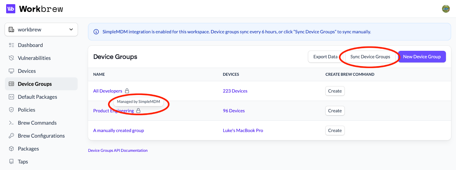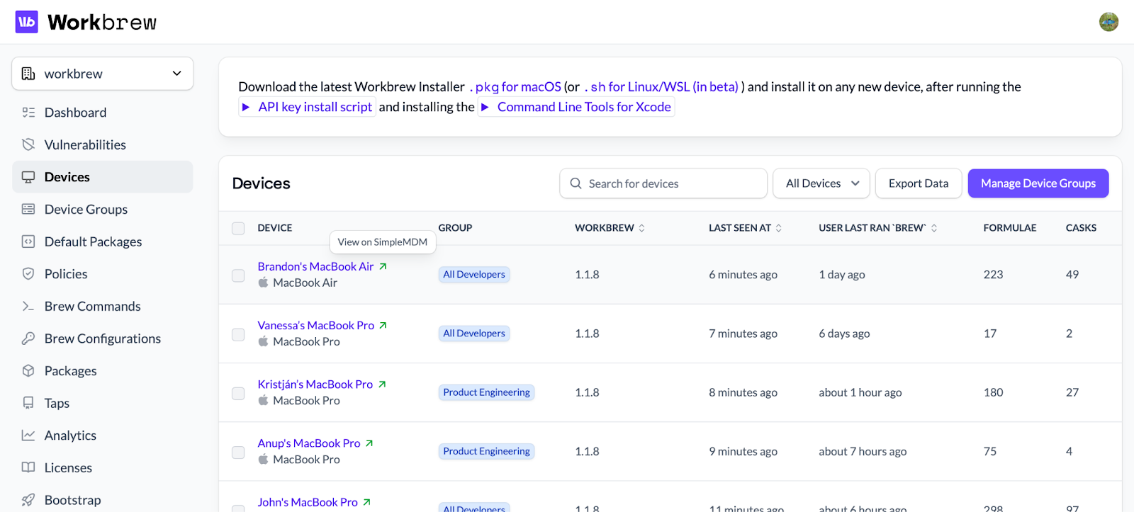 Workbrew now supports read-only syncing of device groups from your MDM (Jamf, Kandji, Intune, JumpCloud, Fleet and SimpleMDM).