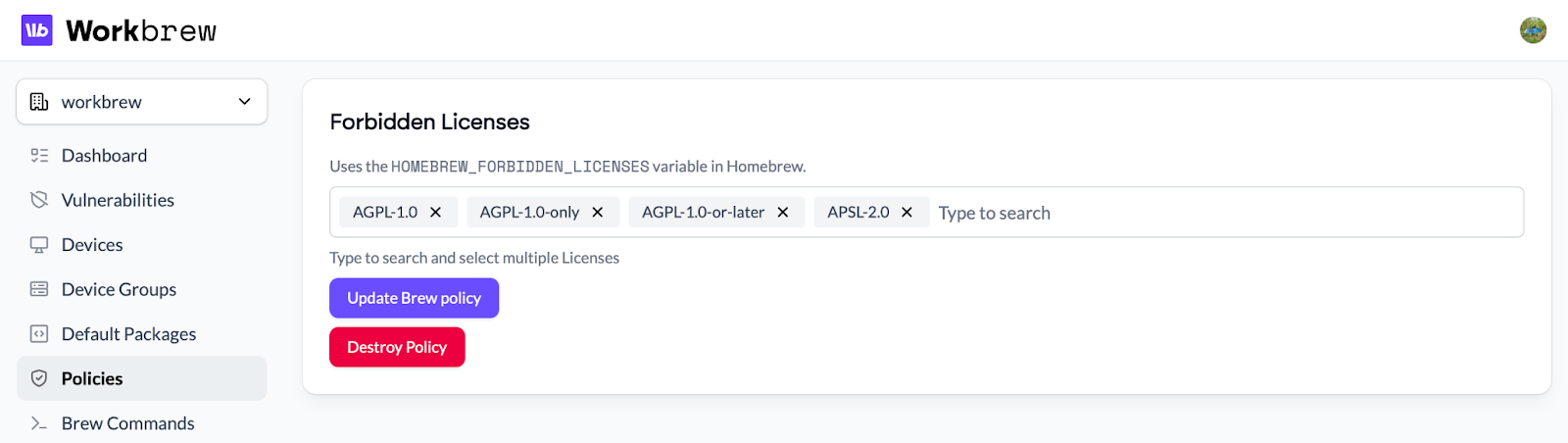 This release expands the Workbrew policies system, delivers powerful new automation tools, supports device management at scale, and enriches the admin experience to provide deeper insights into the software running across their fleet.