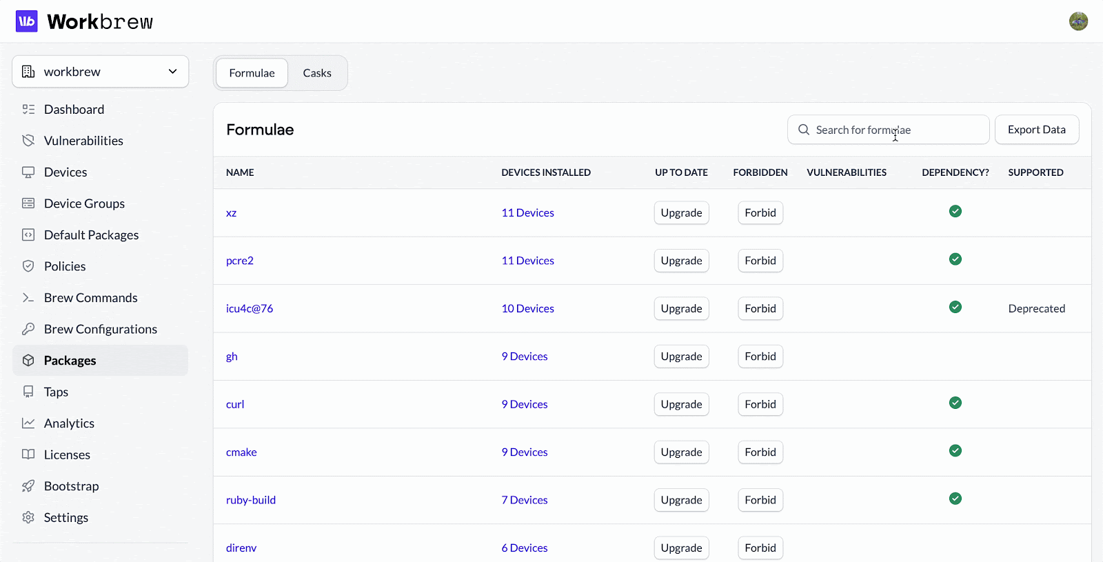 - Make informed decisions about unknown or unvetted packages from within the Workbrew console.
